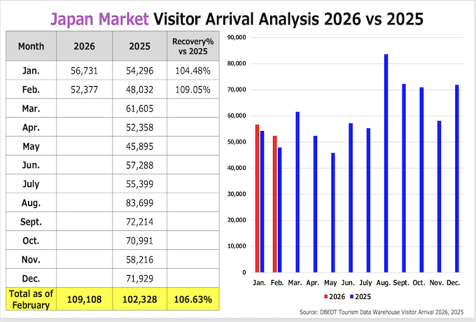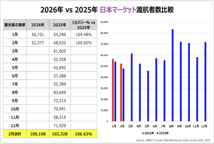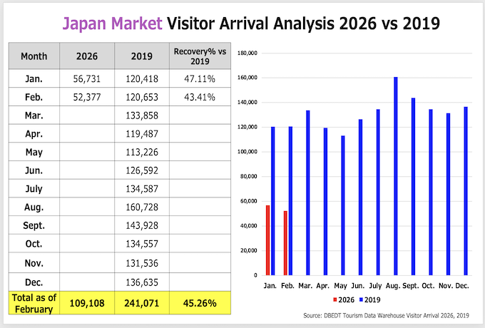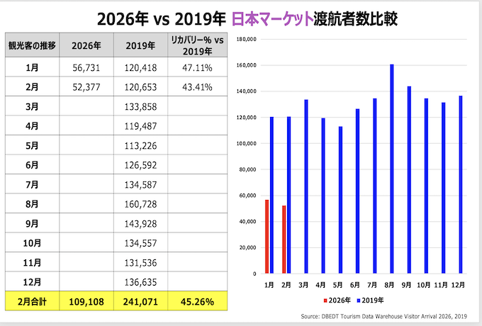 ・日本渡航者数:52,377人 (2019年対比56.6%減, 2025年対比9.0%増)