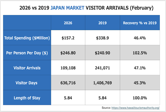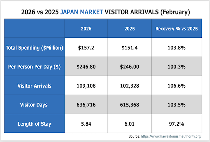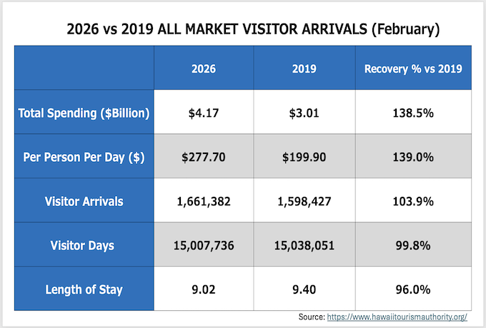 ・ハワイへの全渡航者数:787,024人 (2019年対比0.8%増, 2025年対比3.6%増)