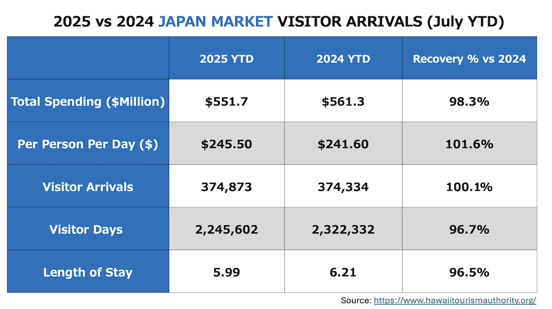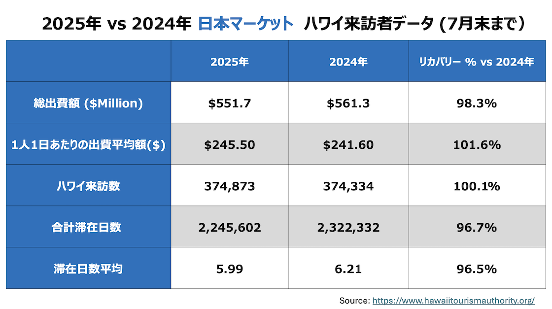 ・ハワイへの全渡航者数:873,430人 (2019年対比12.5%減, 2024年対比4.4%減)