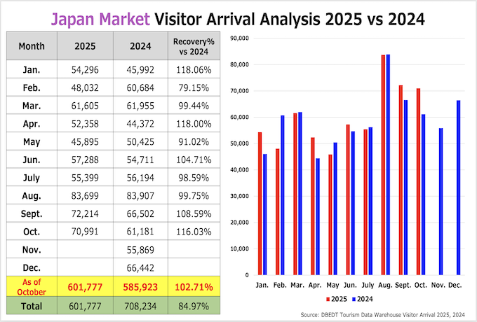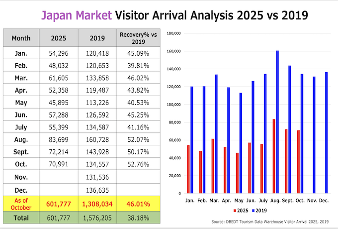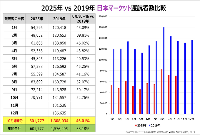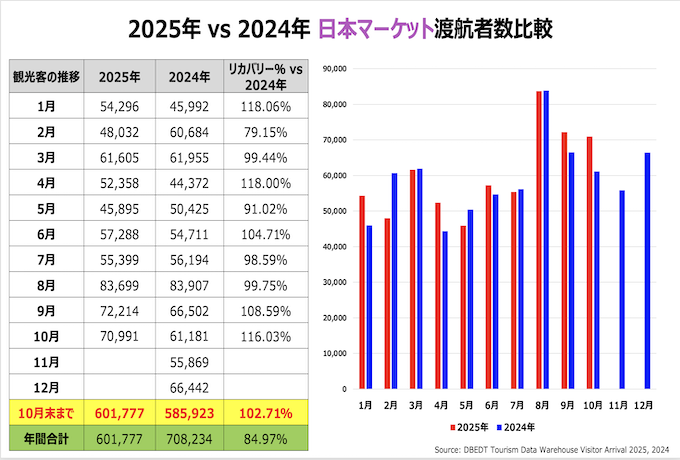 ・日本渡航者数:70,991人 (2019年対比47.2%減, 2024年対比16.0%増)
