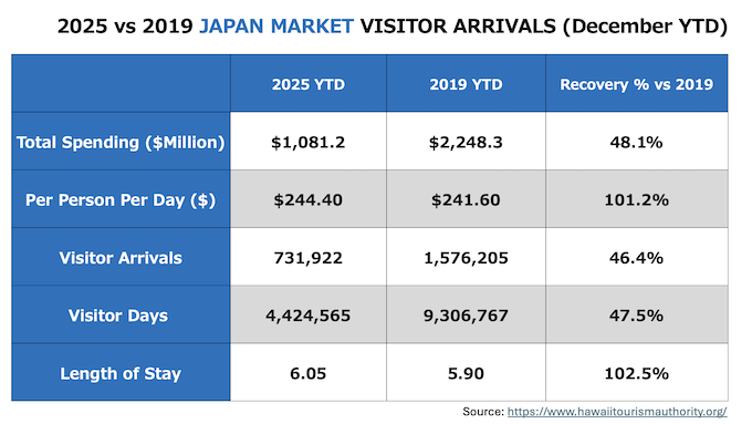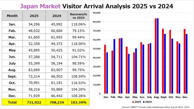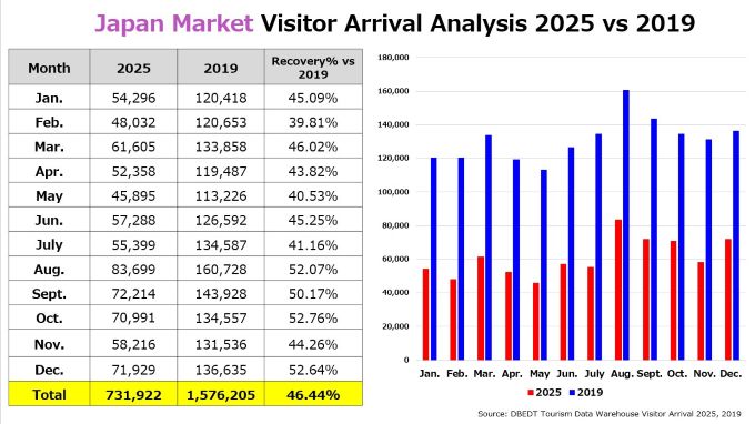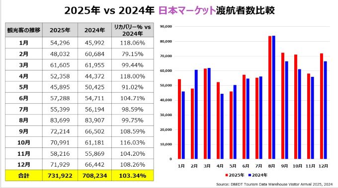 ・日本渡航者数:71,929人 (2019年対比47.4%減, 2024年対比8.3%増)