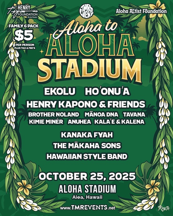 ハワイ音楽界の重鎮であるヘンリー・カポノが、ブラザー・ノーランド、マノアDNA、タヴァナ、キミエ・マイナー、アヌヘアと共演、また、エコル、カナカ・ファイア、マカハ・サンズ、ホオヌア、ハワイアン・スタイル・バンドも出演し、歴史あるスタジアムとのお別れにふさわしい、ハワイを代表する数々のアーティストたちによる忘れられないライブパフォーマンスが披露されます。