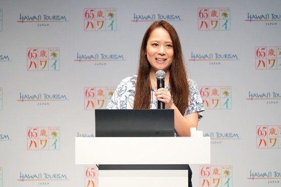 イベントでは、ハワイ州観光局 局次長の高橋あやかより、「65歳からのハワイ」プロジェクトの戦略的背景が発表しました。高橋は、本プロジェクトを通じて、「年齢にとらわれず、自分らしくハワイを思い切り楽しんでいただく新たな旅のスタイル」を提言。自分らしい時間の使い方や「体験」への投資を重視するアクティブシニアの皆さんの背中を押し、人生をより豊かに楽しむための挑戦や体験の提供を行っていくことを語りました。