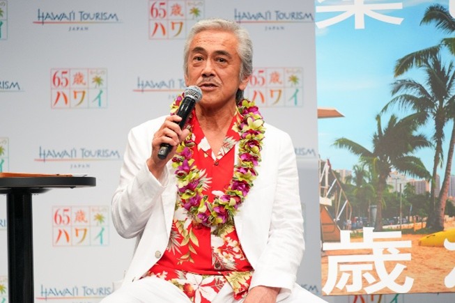 昨今の日本人ハワイ渡航者数の回復基調に加え、日本の人口の約3人に1人がシニア世代※1であり、そのうち約8割が日常生活に支障のない「アクティブシニア」であるという社会背景※2を受け、本プロジェクトは立ち上がりました。発表会では、業界横断による新たな旅のスタイルを提案するとともに、応援団長に就任した俳優の寺島進さんが登壇。ハワイでの撮影秘話や、年齢を重ねてこそ味わえるハワイの魅力を、時に情熱的に、時に和やかな笑顔を交えながら語りました。