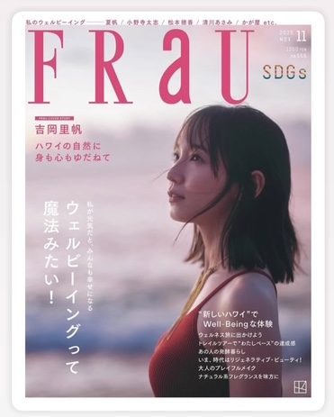 SDG’s をテーマにした雑誌作りで知られるFRaU(フラウ)が、「ウェルビーイング」の1冊を発行。表紙とカバーストーリーには俳優の吉岡里帆さん。撮影はハワイ・オアフ島の渓谷やタロイモ畑、サンセットビーチなど大自然の中で行われました。吉岡さんが考えるウェルビーイング、自身の生き方や家族についてなどロングインタビューも掲載。このほか、ウェルビーイング先進地域でもあるハワイで、新しい過ごし方ができる注目スポットなども紹介されています。