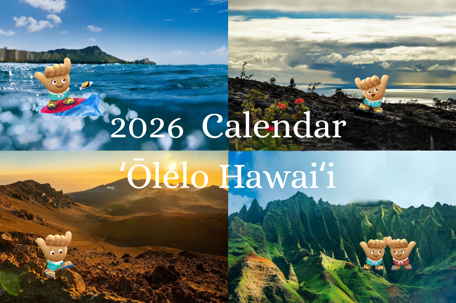 2026年壁紙カレンダーのテーマはʻŌlelo Hawaiʻi(ハワイ語)。