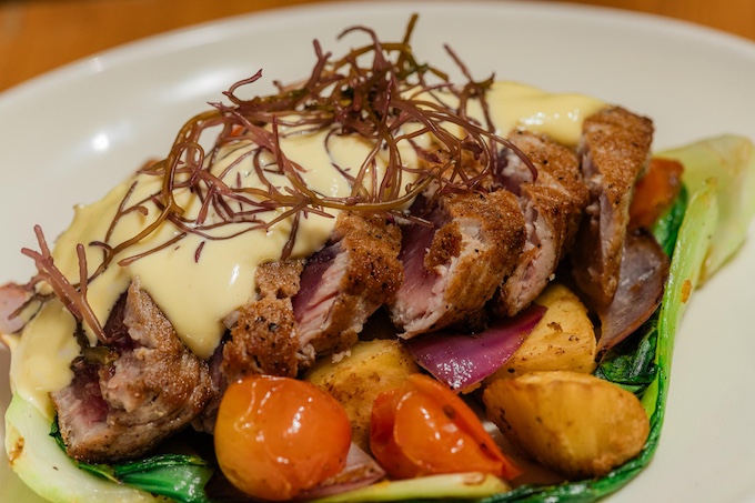 ハワイではゴルフプレーの途中で食事休憩を取らないのが一般的。プレーを終えたら、クラブハウスでランチタイム。コオリナゴルフクラブのレストラン「Roy's」では、シェフ ロイ・ヤマグチ氏のメニューが楽しめます。