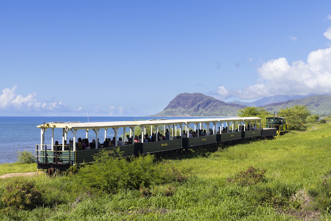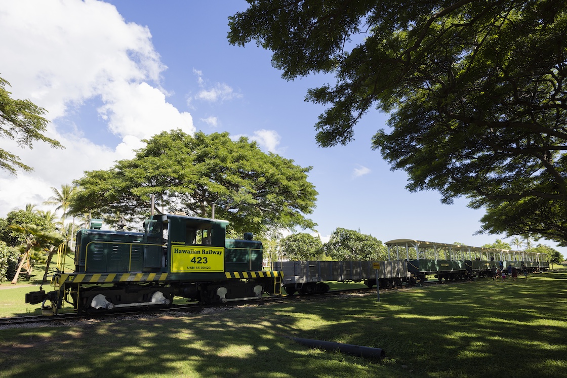 ホテルからタクシーまたはライド系アプリを利用して、ハワイアン・レイルウェイ・ソサエティへ(約20分)。のどかな風景の中でハワイの鉄道文化に触れ、列車に乗車します。オアフ島の鉄道の歴史を展示した併設のミュージアムにも立ち寄ってみましょう。