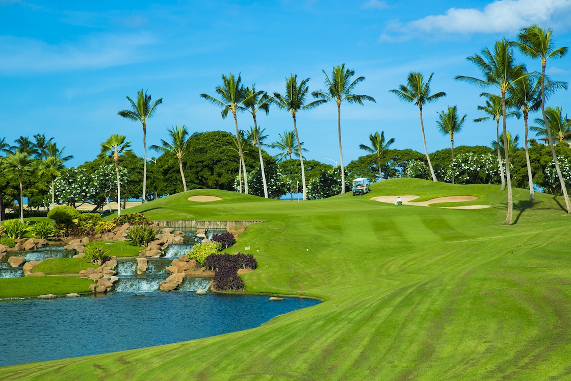午前は優雅にゴルフ、夜はルアウでハワイ文化を体感します。