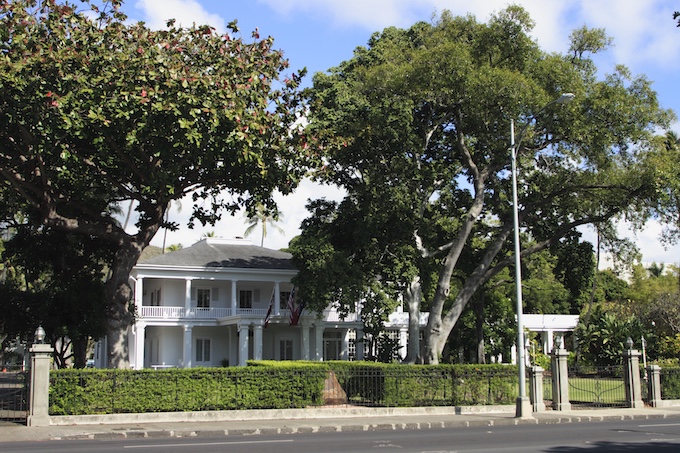 リリウオカラニ女王が晩年を過ごした邸宅。現在は州の公式迎賓施設として使われ、外観からも落ち着いた気品と歴史の重みを感じられます。