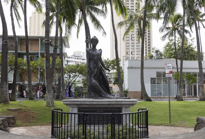 ワイキキ歴史ウォークの締めくくりにふさわしいのがカピオラニ公園です。かつて湿地帯だったこの場所は、王によって市民のための公園として整備されました。現在では地元の人々や観光客の憩いの場となっています。ダイヤモンドヘッドを望みながら、1日の散歩をゆったり振り返ることができる、ワイキキ観光の隠れた魅力スポットです。公園の入り口からカラカウア通り沿いに少し進むと、カピオラニ女王の銅像もあります。