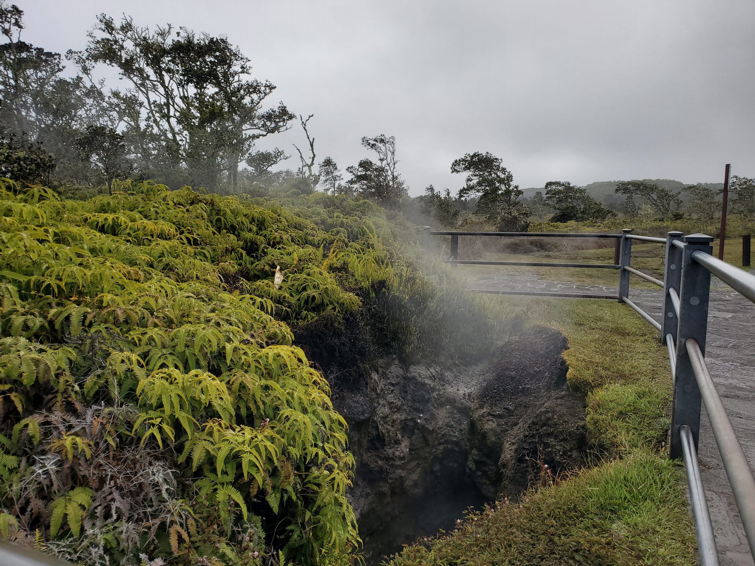 このプランの目玉の1つである、ハワイ火山国立公園に到着。園内は気候が急に変わったり、洞窟に入ることもあるので、羽織るものを持っていくのがおすすめです。公園内での移動は、すべてガイドが案内してくれるので安心です。
