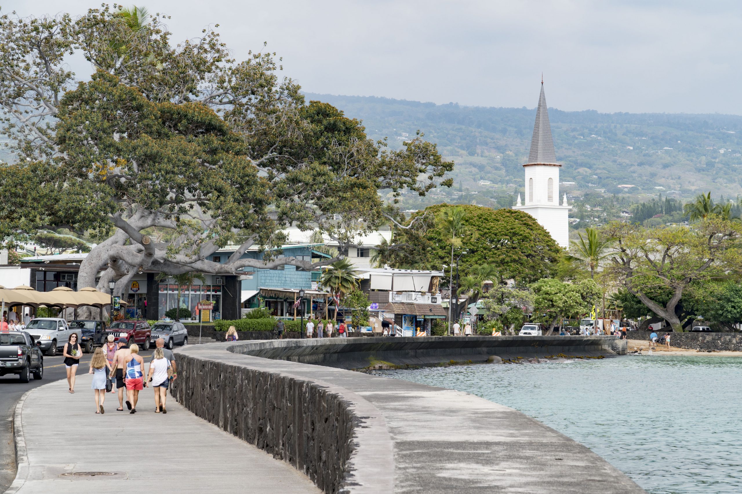 朝の海沿いでお散歩をして一日がスタート。海沿いのアリイ・ドライブ沿いには、ショッピングやレストラン、カフェが立ち並びます。空いているお店を見つけて、ブランチにしたり、ハワイ島で栽培されるコナコーヒーを飲んでリラックスタイムを過ごせます。