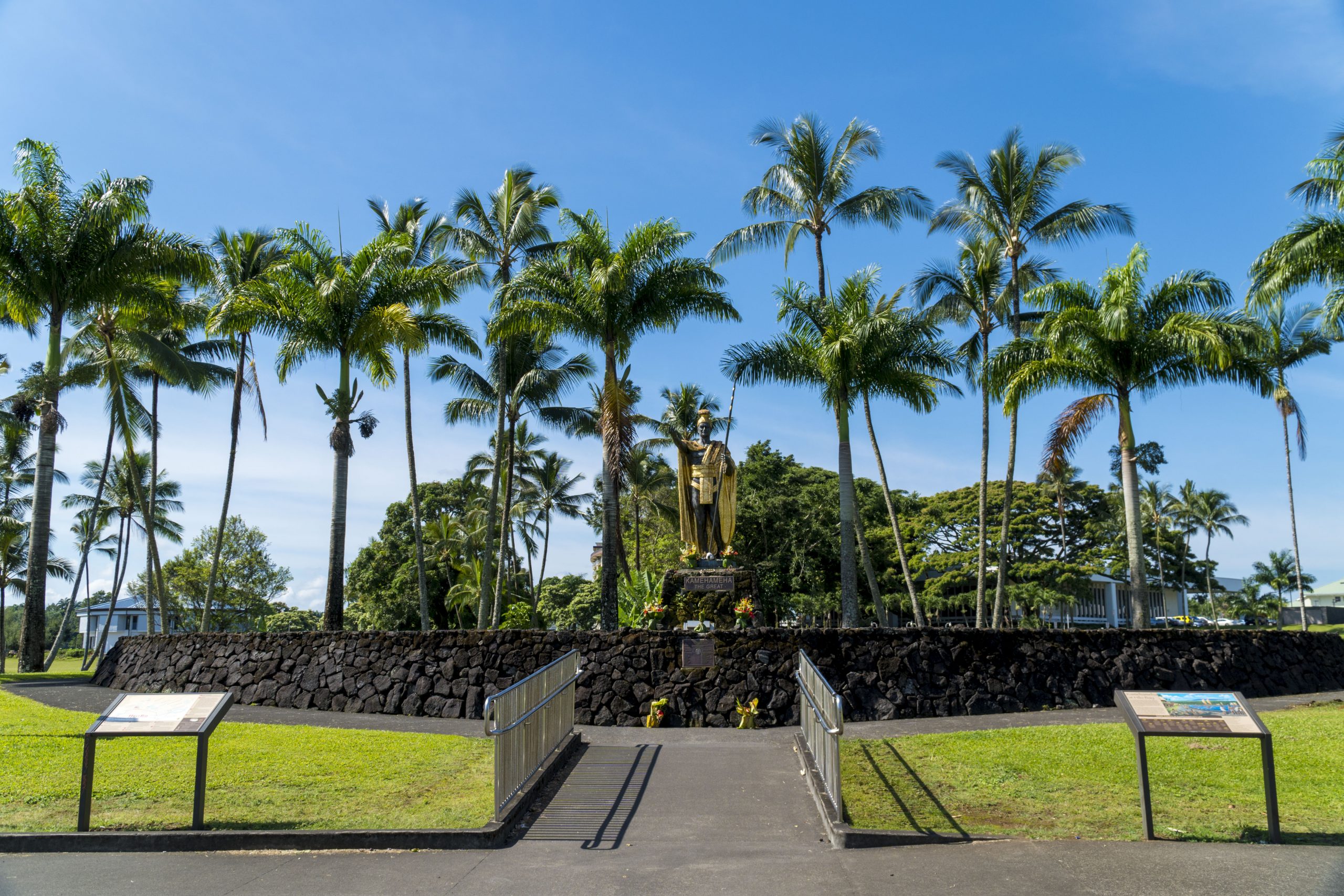 ハワイで3体立つカメハメハ大王像のうちの1体が、ヒロにあります。オアフ島の銅像との違いを見つけるのも楽しいもの。本ツアー工程にはありませんが、近くには、日本を感じられる「リリウオカラニ庭園」や、レインボー滝で知られる「ワイルク川州立公園」もあるので、ご自身で行かれる際は足を延ばしてみることをおすすめします。