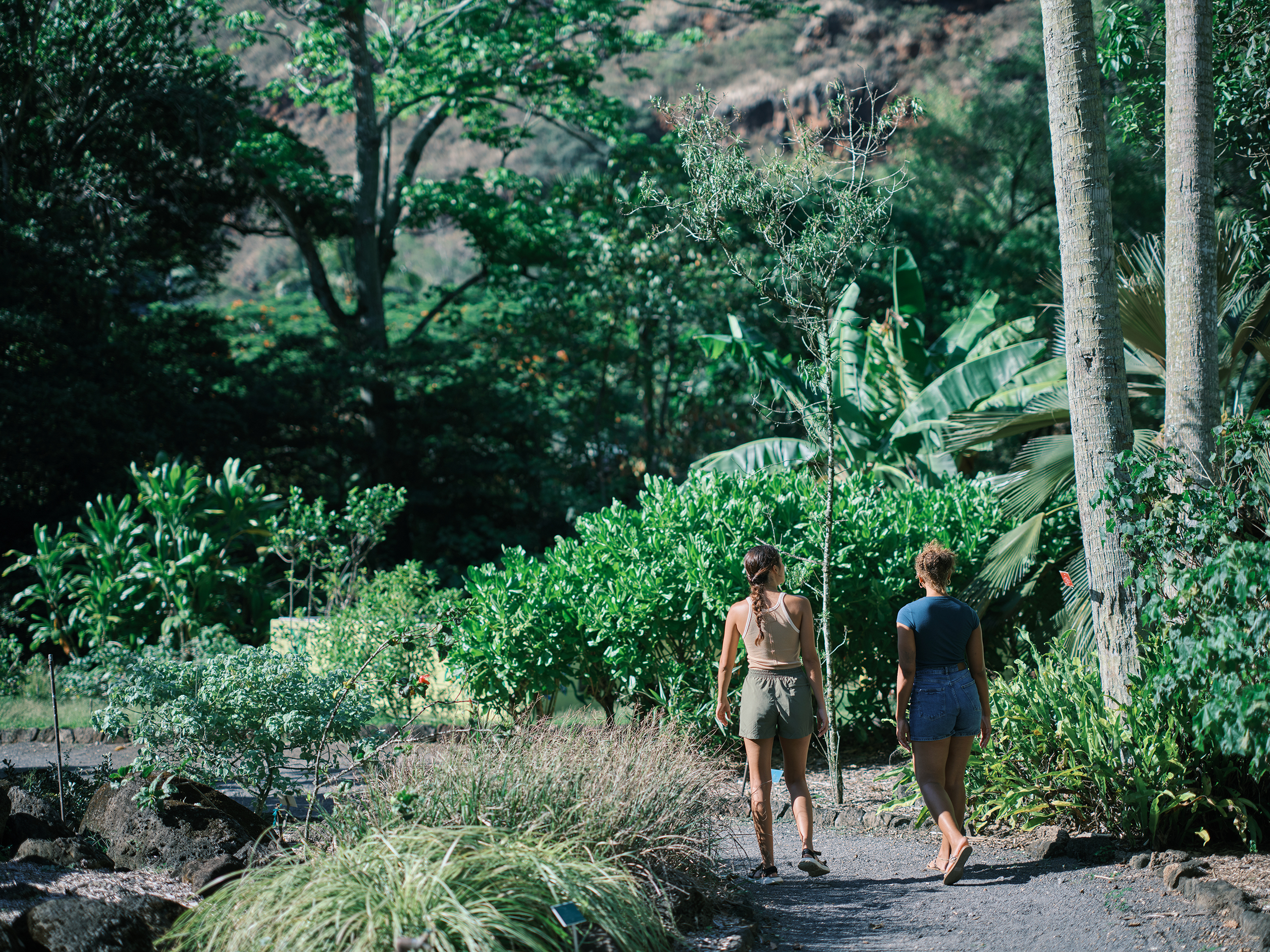 まずワイメア渓谷でハワイの固有植物を鑑賞し、ハワイの生態系の希少性を学びます。カフクファームでハワイ産食材のランチを楽しんだあと、ガンストックランチで植樹体験へ。自分が植えた一本の木が、ハワイの自然にとってどれほど意味を持つかを感じられるのがこのプランの最大の特徴です。そして一日の最後には、ハワイの固有植物であるコアの木を使用した製品を取り扱うショップでお土産探し。固有種の希少性を知ったうえで手に取るからこそ、選ぶ意味がひとつ増します。