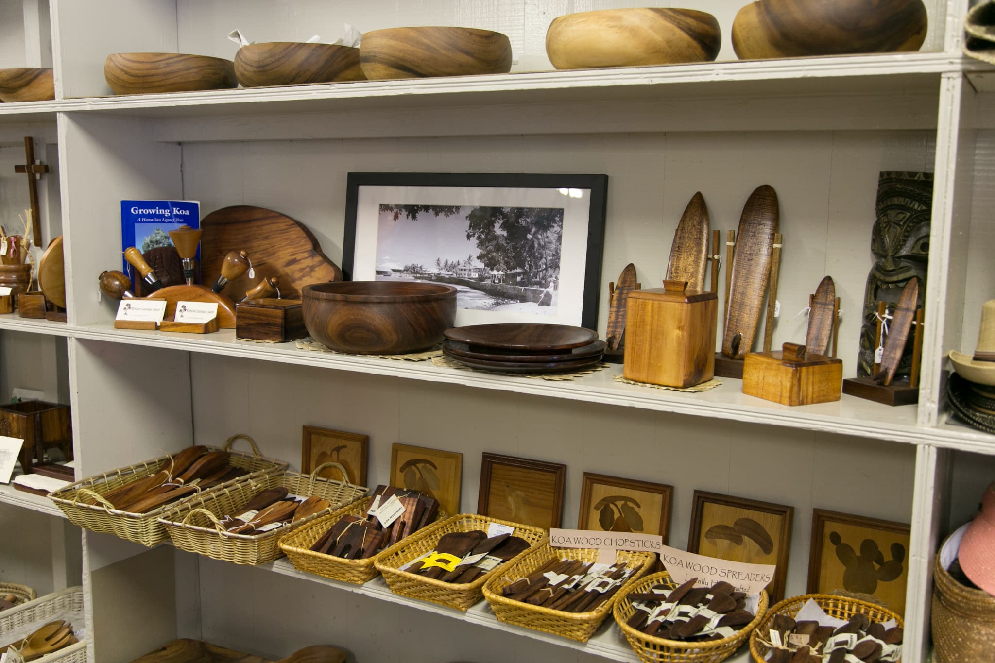 ワイキキに戻り、固有種のコアの木を使った製品を扱うショップでお土産探し