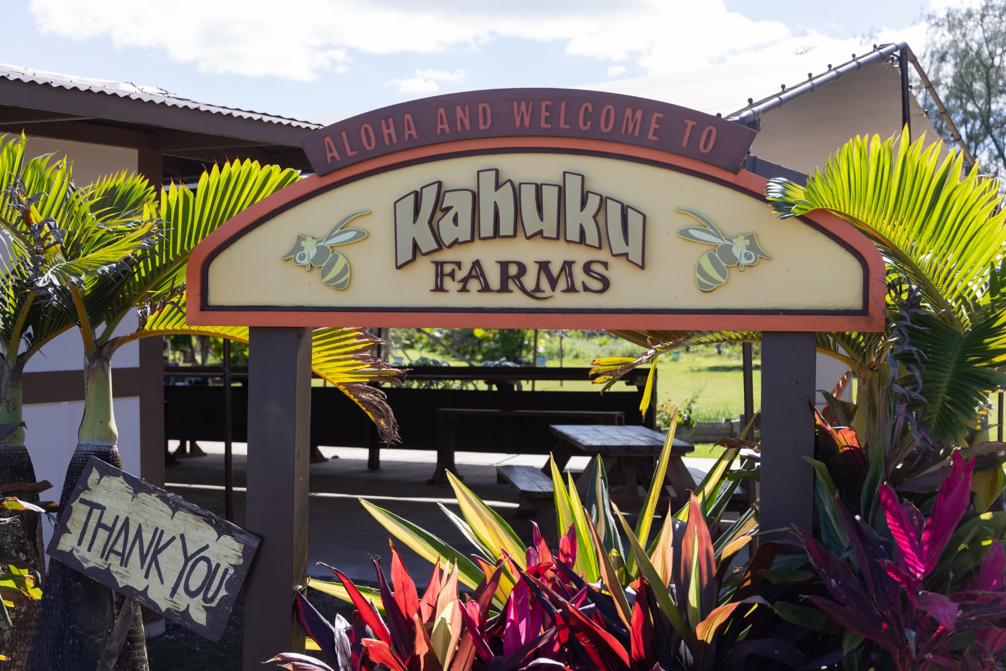 次の目的地に移動する途中、カフクファームに立ち寄りランチタイム。ファーム産アサイーを使用したアサイーボウルやハワイ産食材にこだわったメニューが揃います。産地が目の前にあるファームならではの鮮度と味を、ランチとして気軽に楽しめます。ドライブの疲れをリセットできる、ちょうどいい休憩スポットでもあります。