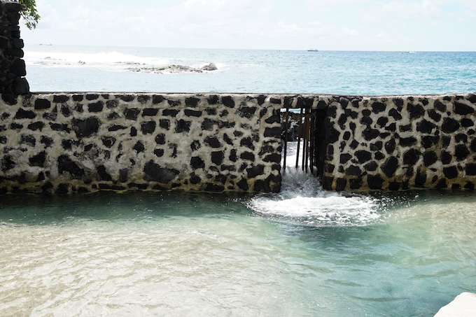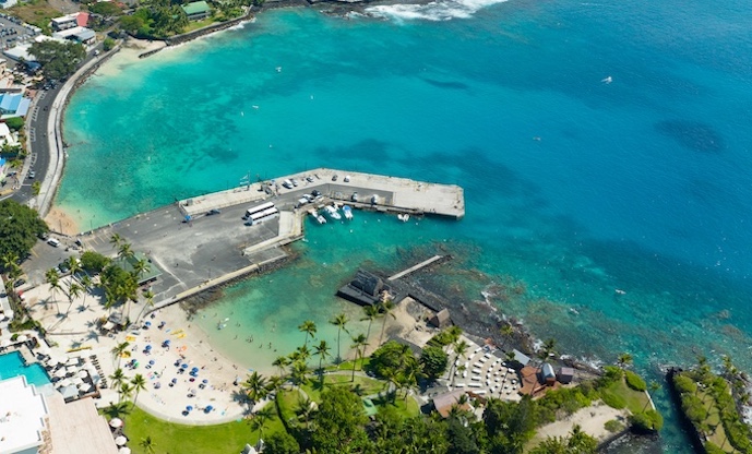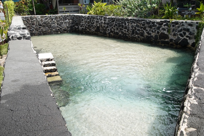 船の発着地として栄えた港の中心。現在も観光やイベントの拠点であり、コナの海と街のつながりを感じられるスポットです。海に突き出した桟橋からフリヘエ宮殿にかけて1900年に海壁が築かれ、道路を守っています。また、海壁の下を覗くと、16世紀に大酋長ウミが上陸した岩岬「パオウミロック」の跡が見えます。