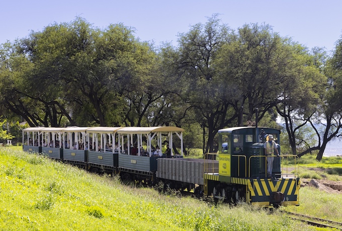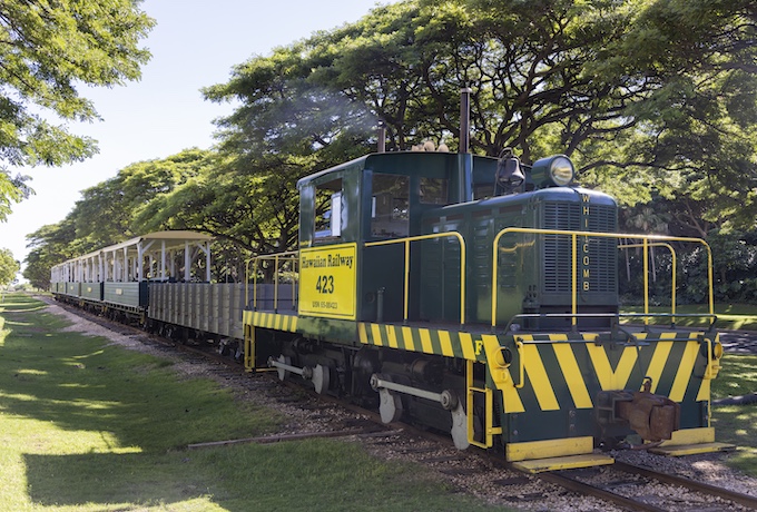 お腹を満たしたあとは、観光列車に乗ってプランテーション時代へ想いを馳せます。 ハワイアン・レール・ソサエティーは、1889年創業のオアフ・レイルウェイ&ランド・カンパニーの歴史を受け継ぐ鉄道保存団体。この鉄道は、当初ホノルル〜パールハーバー間で旅客輸送を行っていましたが、サトウキビ産業の発展とともに貨物輸送が中心となり、その後、路線はカエナポイントやカフクへと延伸。島の産業と物流を支える重要な役割を担いました。 現在走る列車は、1890年から1947年まで実際に使用されていた線路の一部を活用しており、当時の人々の移動と産業の歴史を今に伝えています。