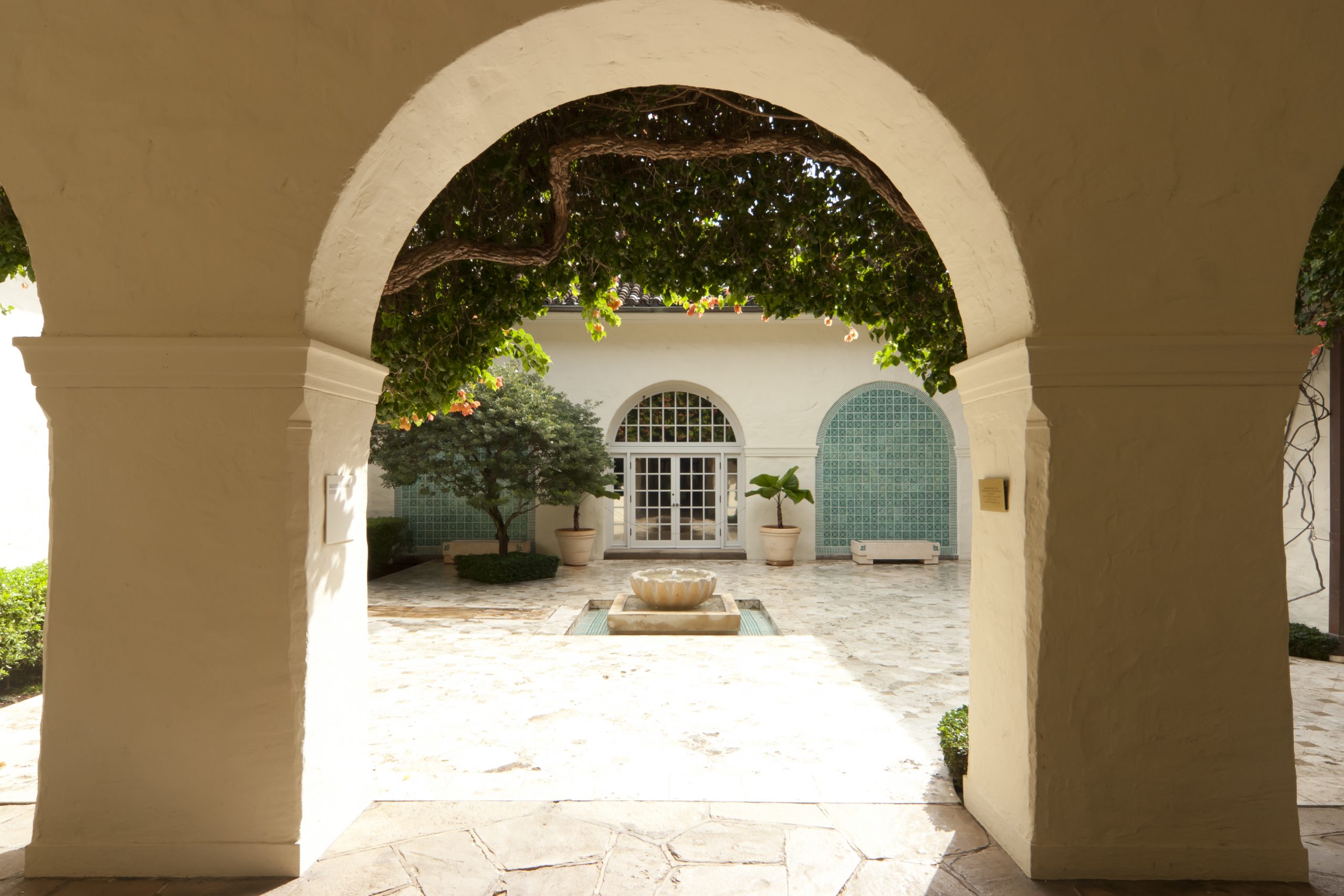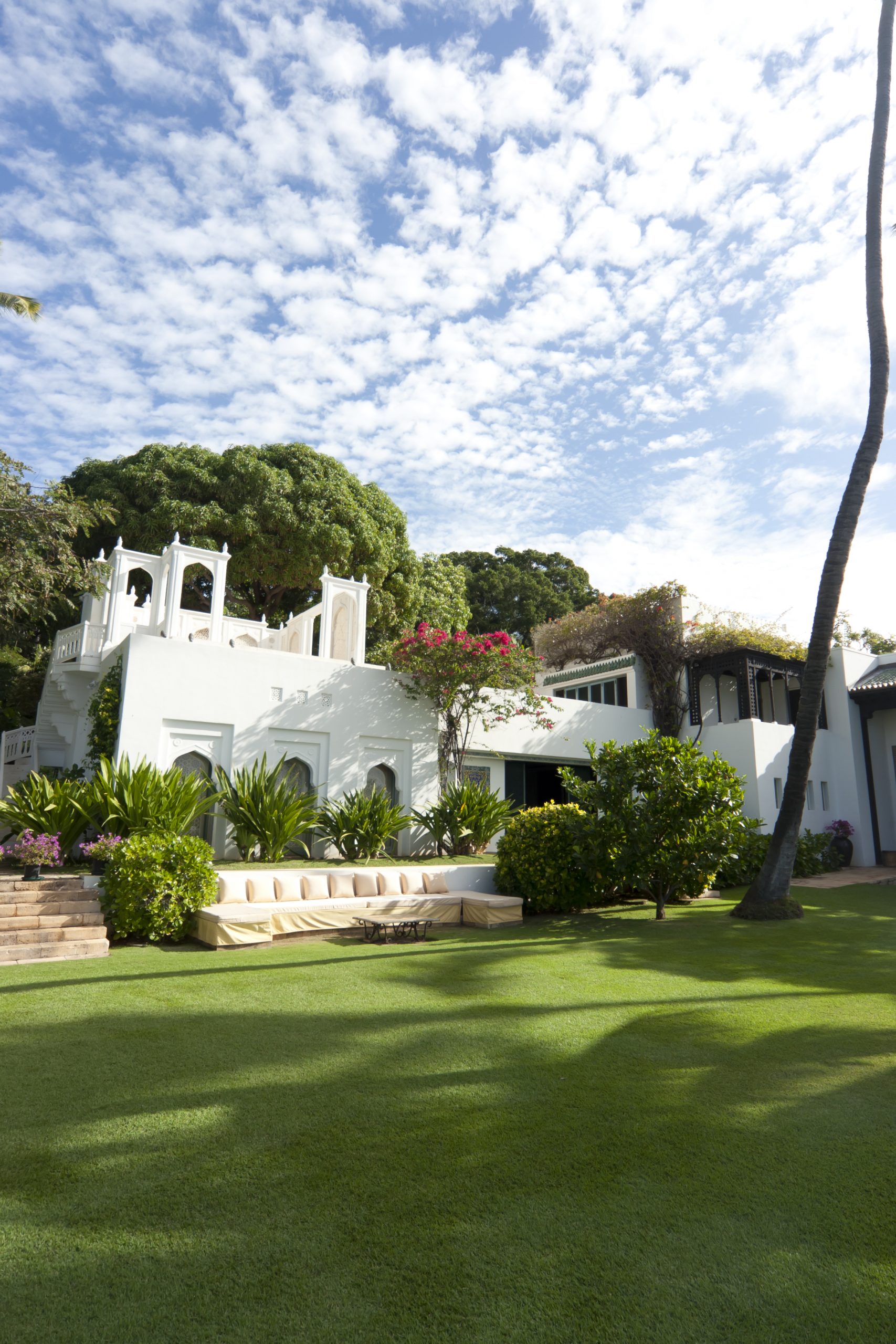 ホノルル美術館からツアーバスに乗りシャングリ・ラ(Shangri La)へ。 イスラム美術とハワイの大自然が融合した空間で特別なひと時を過ごします。 白亜の建物と青い海や空のコントラストは思わず息をのむ美しさ。 (※ツアーへの参加は事前予約が必須)