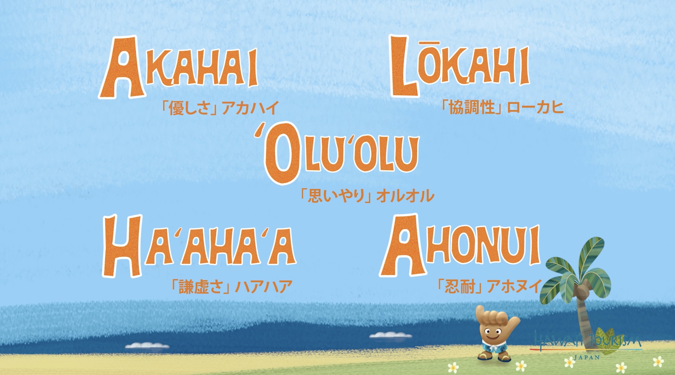 「これらを合わせるとALOHAになる。きみの心には、もうALOHAの精神が息づいているんだよ!」