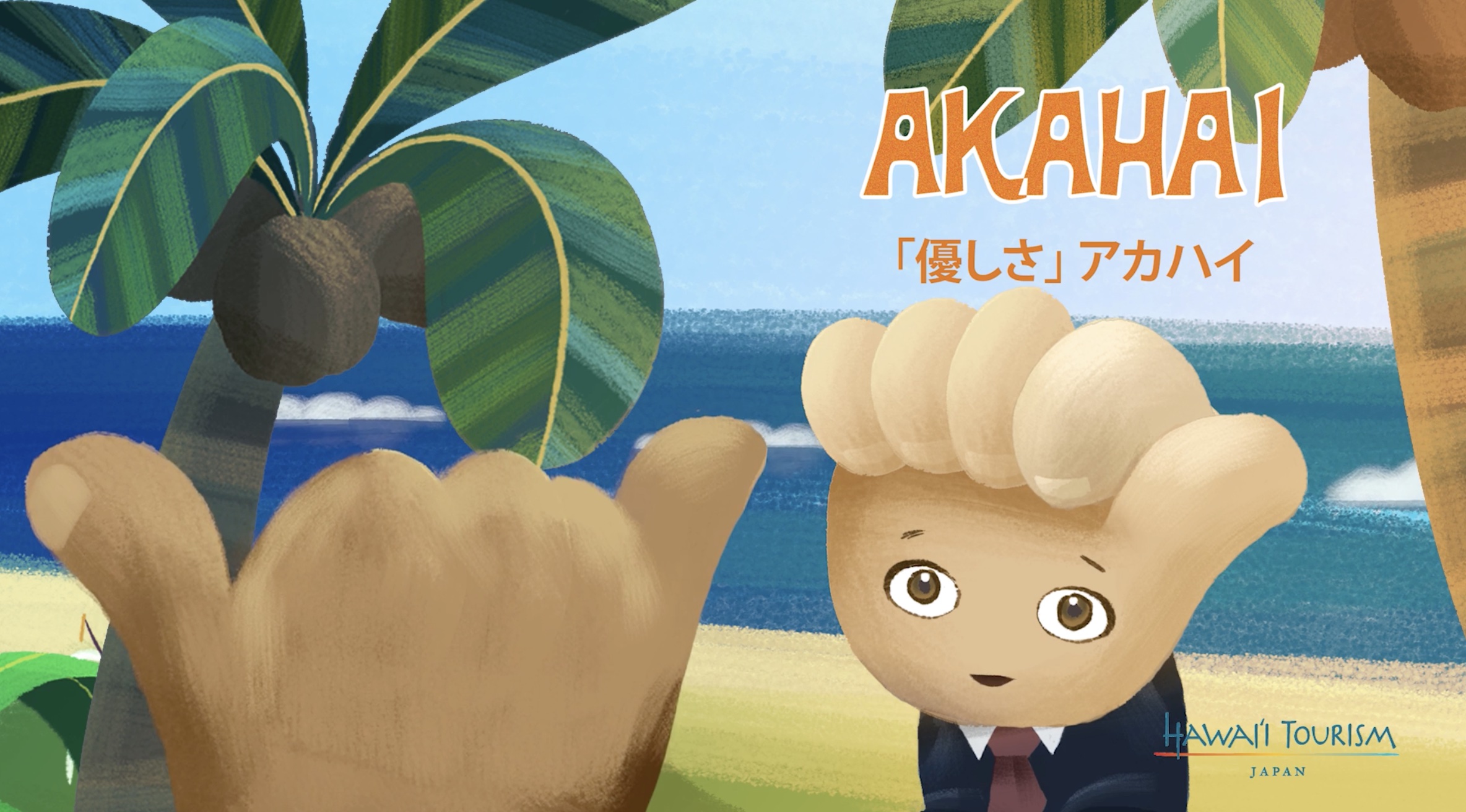 Shakaは、ハワイで挨拶に使われるハンドサイン。そして、Shakaちゃんは、世界にALOHAを広めるため2014年に誕生した、ハワイ州観光局のキャラクターです。
