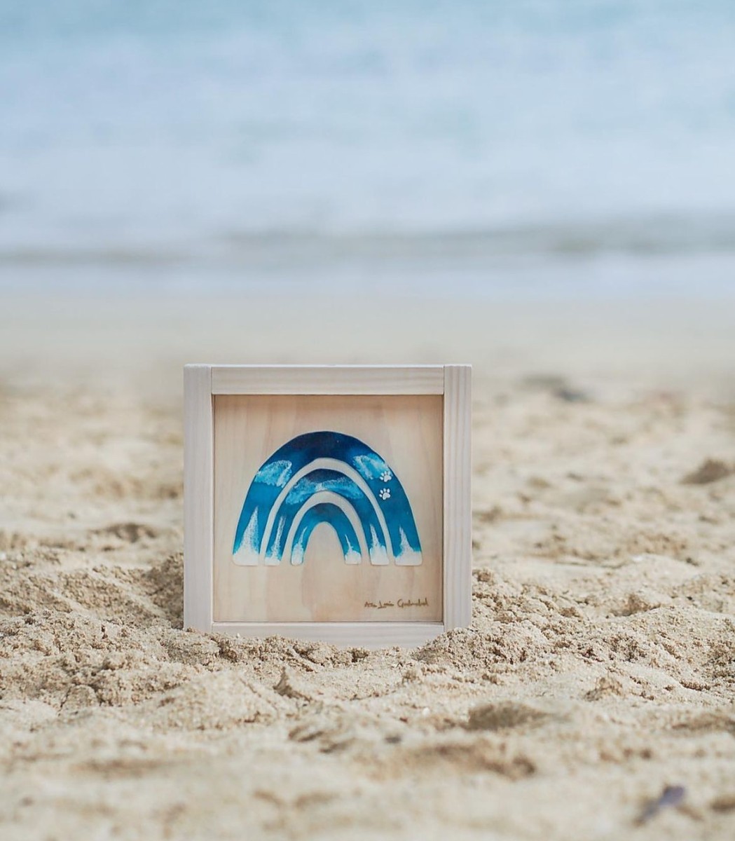 パンデミックの最中、アナ・ルシアさんの愛犬ロメオを癌闘病中に失い、ロメオを思って制作したのが海と虹をテーマにした「レインボー・ブリッジ・タイド(Rainbow Bridge Tide)」というレジン(樹脂)とインクを使ったアートコレクションでした。