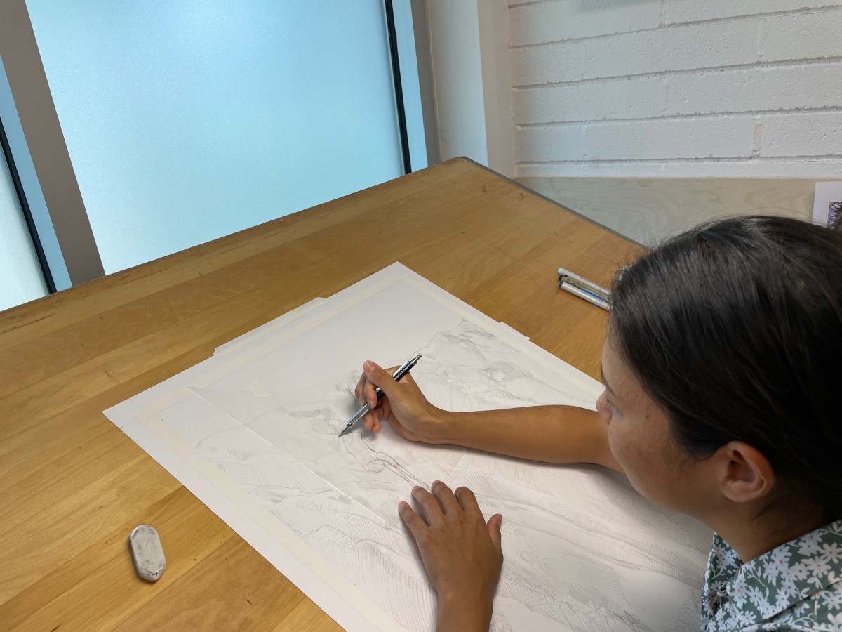 アナ・ルシアさんは、メキシコ南部オアハカ出身。ポップでカラフル、可愛らしい街並みで有名なオアハカで育ったアナ・ルシアさんは、子供の頃から絵を描くのが好きでした。高校卒業後、大学進学のために留学生としてハワイに移住したアナ・ルシアさんは、美術史と、経済学の二つの学位を取得した才女でもあります。2018年に大学卒業後、留学生のためのインターンシップ制度と経済学の専攻を生かして1年間ハワイの銀行で働きました。その後、在学中にボランティアをしていたホノルル・ミュージアム・オブ・アート(Honolulu Museum of Art)の縁で、子供たちに美術を教えるクラスの講師アシスタントを経験し、大好きなアートの職に就くことができたものの、パンデミックが起きて失職。アート制作に集中するようになりました。