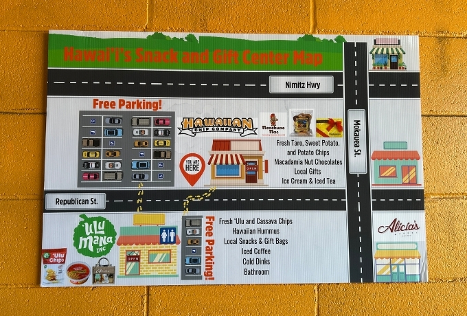 上記2軒は、工場内の見学ツアーはありませんが、ウルチップスでは奥の様子がガラス窓越しに垣間見えます。このエリアに来たらぜひ立ち寄って出来たてのチップスを食べてみてください。ハワイアンチップカンパニーの横に両店用の無料駐車場も完備しています。