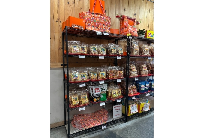一方、通を挟んだ反対側には、タロチップスを製造販売する「ハワイアン・チップス」があります。こちらはタロ芋を薄くスライスして揚げたチップス専門店。サツマイモチップスもあり、どちらも人気。お土産に良さそうな小袋からお得用サイズまで大小展開していて、ローカルが次々に買いに訪れます。