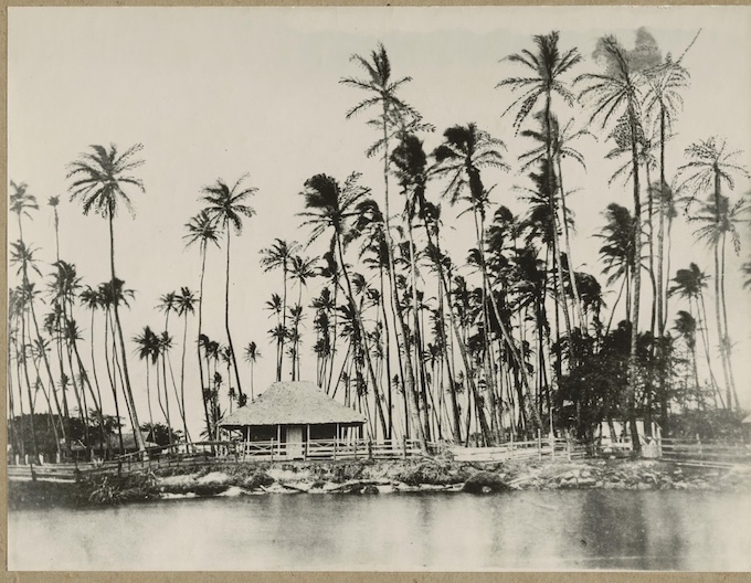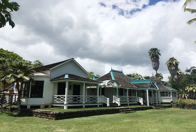 ワイキキを代表するホテルの一つ、ロイヤルハワイアンホテル。この建物がある場所は、かつて、このような様子でした。三角屋根の建物が、カメハメハ5世の別荘です。5世が過ごした場所にあるホテルということで、宿泊されたら、王族と同じ場所で目覚める、という経験ができますね。