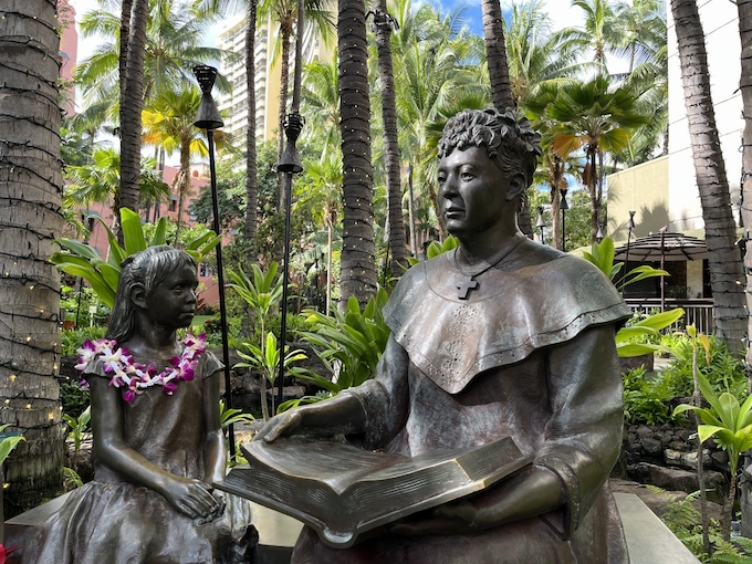 ロイヤル・ハワイアン・センターにある「パウアヒ王女像」