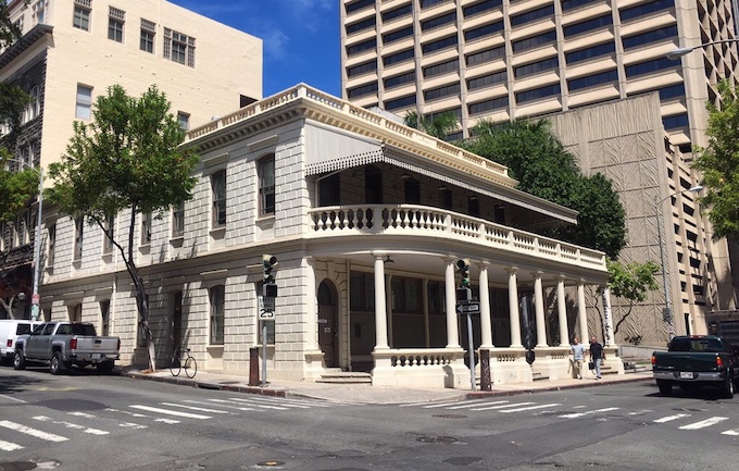 ダウンタウン散策の楽しみは、美しい歴史的建造物が次々と見られること。1800年代に建てられた美しいデザインの建物が並ぶマーチャント・ストリートには、1870年に完成した、ハワイで初となる郵便局の建物が保存されています。カメハメハ5世の指示により建てられたものですが、「郵便局にあたる建物を建ててほしい」と要望を出していたのは、当時、郵便事業を取り仕切っていた、後に王となるカラカウアだったという話が残っています。