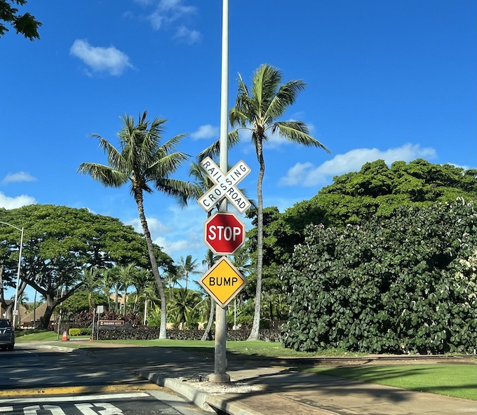 フリーウェイのH-1が終わり、道がファリントン・ハイウェイ(Farrington Hwy)となって間もなく、右手に「Exit」のサインが見えます。ここで右手の道に入ると、きれいに整備された道が現れ、さらに、こんなサインが見えてきます。