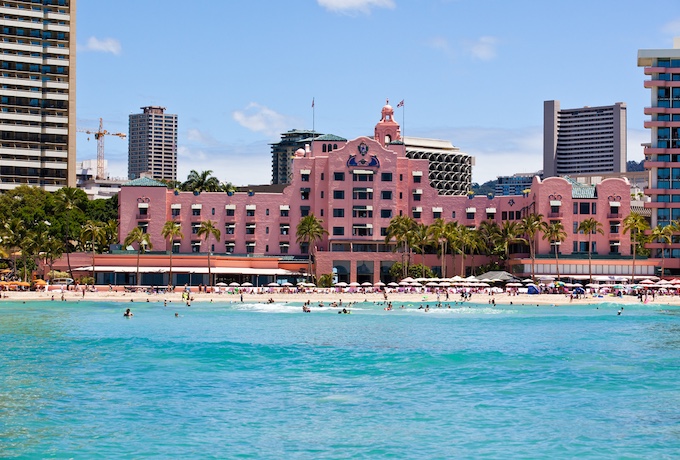 ピンクの外観が美しい「ロイヤルハワイアンホテル」