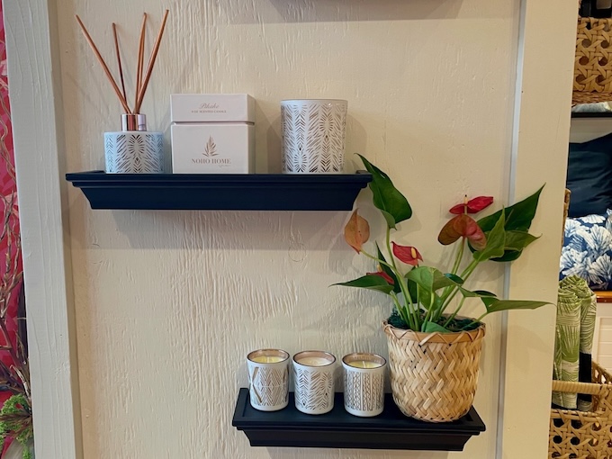 そんなノホ・ホームのリテールショップは、アラモアナセンターで営業中です。寝具、クッションカバー、テーブルリネンなどのインテリアグッズの他に、キャンドル、ソープ、ルームミストなどハワイの香りを楽しめるアイテムも展開。店内はノホ・ホームのアイテムがお洒落にディスプレイされていて、見ているだけでインスピレーションを受けてしまいます。
