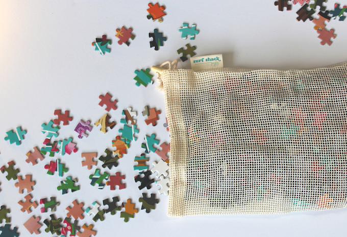 パッケージやパズルはリサイクルペーパーを用い、パズルピースが入っているパッケージもビニール袋ではなく、再利用できるオーガニックコットン製のメッシュバッグを採用。インクもノントキシック(有害な石油用剤を使わない)インクと、環境に優しい物づくりを心がけているのが特徴的です。