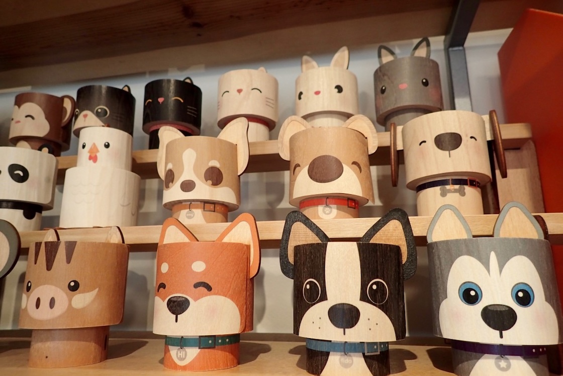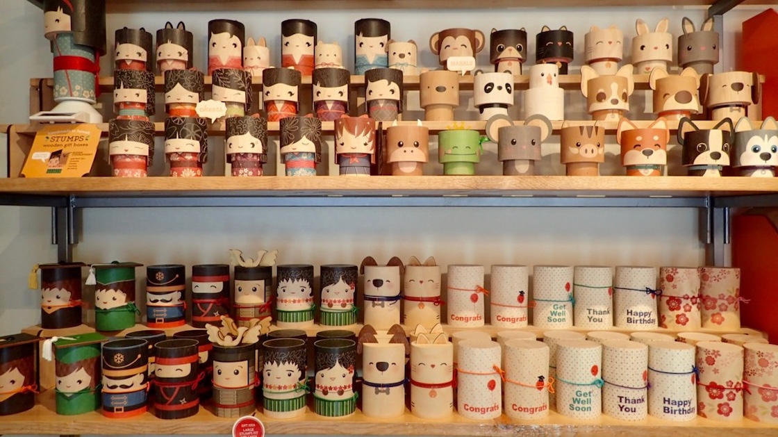 ロコに人気なのは動物のアートデザイン。犬や猫などが人気だそう。特に犬はボストンテリアや柴犬、チワワなどブリード別のデザインがありポピュラーなアイテム。その他、だるま柄や干支を使ったデザイン、学校の卒業シーズンに大人気な卒業生デザイン、ホリデーシーズン用のクリスマスデザインなど、ローカルのライフスタイルに合わせた様々なデザインがあり、コレクターもいるほど。しっかりした作りなのでギフトボックスとして再利用できるのはもちろんのこと、インテリアとして部屋に飾ったり、ギフトボックスのライフサイクルを熟考して作られたアイディアたっぷりのアイテムです。最終的にゴミとして捨てて土に埋められても、木なのでプラスチックと違い生物分解されます。