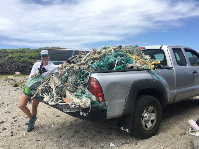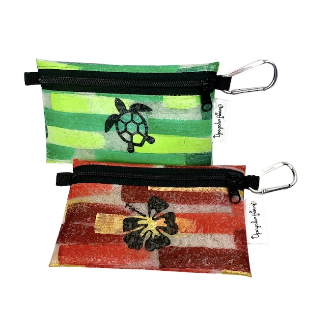 ハワイ島のヒロで生まれたブランド、アップサイクル・ハワイ(Upcycle Hawaii)もその一つ。ビーチクリーンをして拾ってきた漁業用網やロープや、トイレットペーパーなど生活必需品を包装しているビニール袋を集めて材料として再利用し、ポーチ、バッグ、ジュエリーなどのハンドメイド商品を作っています。